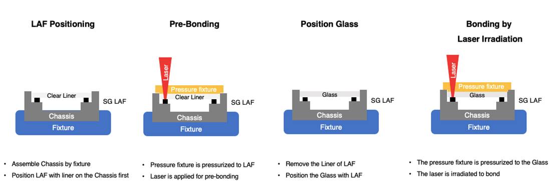 與兩種主流粘合方法相比,SG LAF提供了壓敏泡棉膠帶和點(diǎn)膠方法: