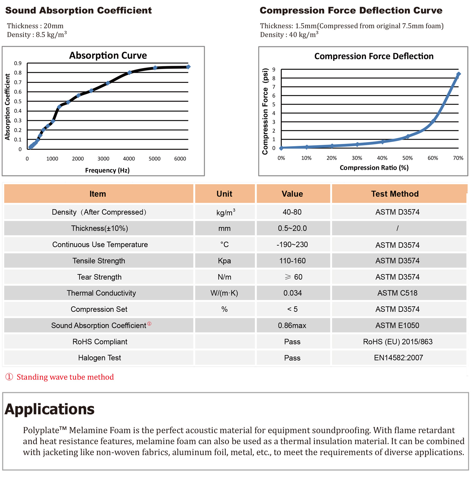 TM 三聚氰胺泡棉是由三聚氰胺樹脂制成的熱固性聚合物。開孔具有三維網狀結構的特征。這種結構使得泡棉在阻擋噪聲和隔熱方面有效。三聚氰胺泡棉以三聚氰胺樹脂為原料,本身具有優異的阻燃性能。三聚氰胺泡棉還具有優異的耐溫性和熱穩定性。它可以在極端溫度下保持其物理特性。在電子行業,這種泡沫通常被壓縮到其原始厚度的15%-20%,以獲得最佳的吸聲效果。標準泡沫顏色為白色和灰色。其他顏色可根據要求提供。" />