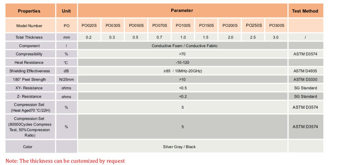 TM POS系列導電泡棉由金屬鍍層的開孔型聚氨酯泡棉和一種帶有導電壓敏丙烯酸膠粘劑的金屬化織物組成。這種高度可壓縮的材料經(jīng)過專門設(shè)計,可提供通過X、Y和Z軸進行EMI屏蔽和接地。POS系列基于軟泡棉結(jié)構(gòu),在寬間隙距離內(nèi)具有可靠的電氣性能。與PO系列相比,POS系列更柔軟,在一定壓縮比下只需更低的力載荷。" />